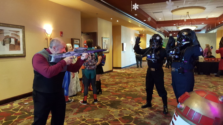 Charlotte Comicon is a single-day show that is held three times per year, typically in the Spring, late Summer, and early Winter, and has been an annual event for the garrison since it first began in 2002. The con's main focus is on the artists, writers, and creative forces behind comics, and is always glad for the Imperial presence that the garrison brings, along with our colleagues of the Rebel Legion, the Droid Builders, and the Mandalorian Mercs. This year's Winter show saw a record presence of troopers, Mandos, droids, and Rebels, and our members were as always a big hit with con attendees!